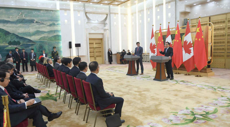 12月4日下午,国务院总理李克强在人民大会堂同加拿大总理特鲁多举行第二次中加总理年度对话后共同会见记者。