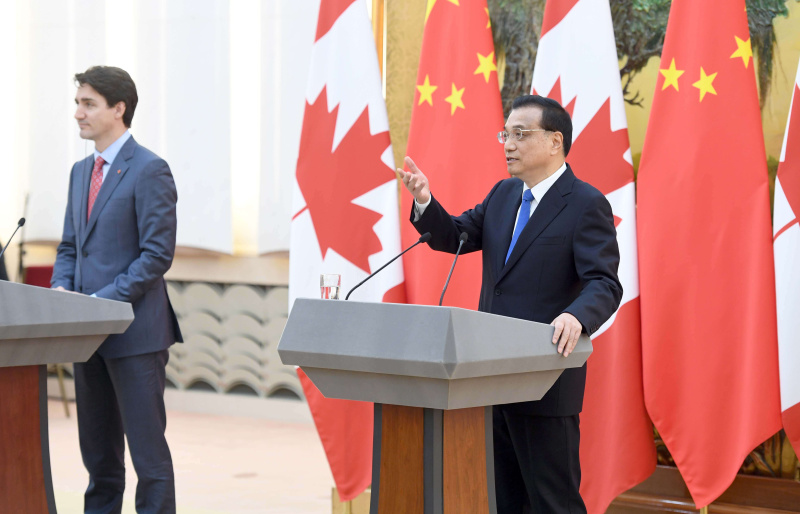 李克强与加拿大总理特鲁多共同会见记者