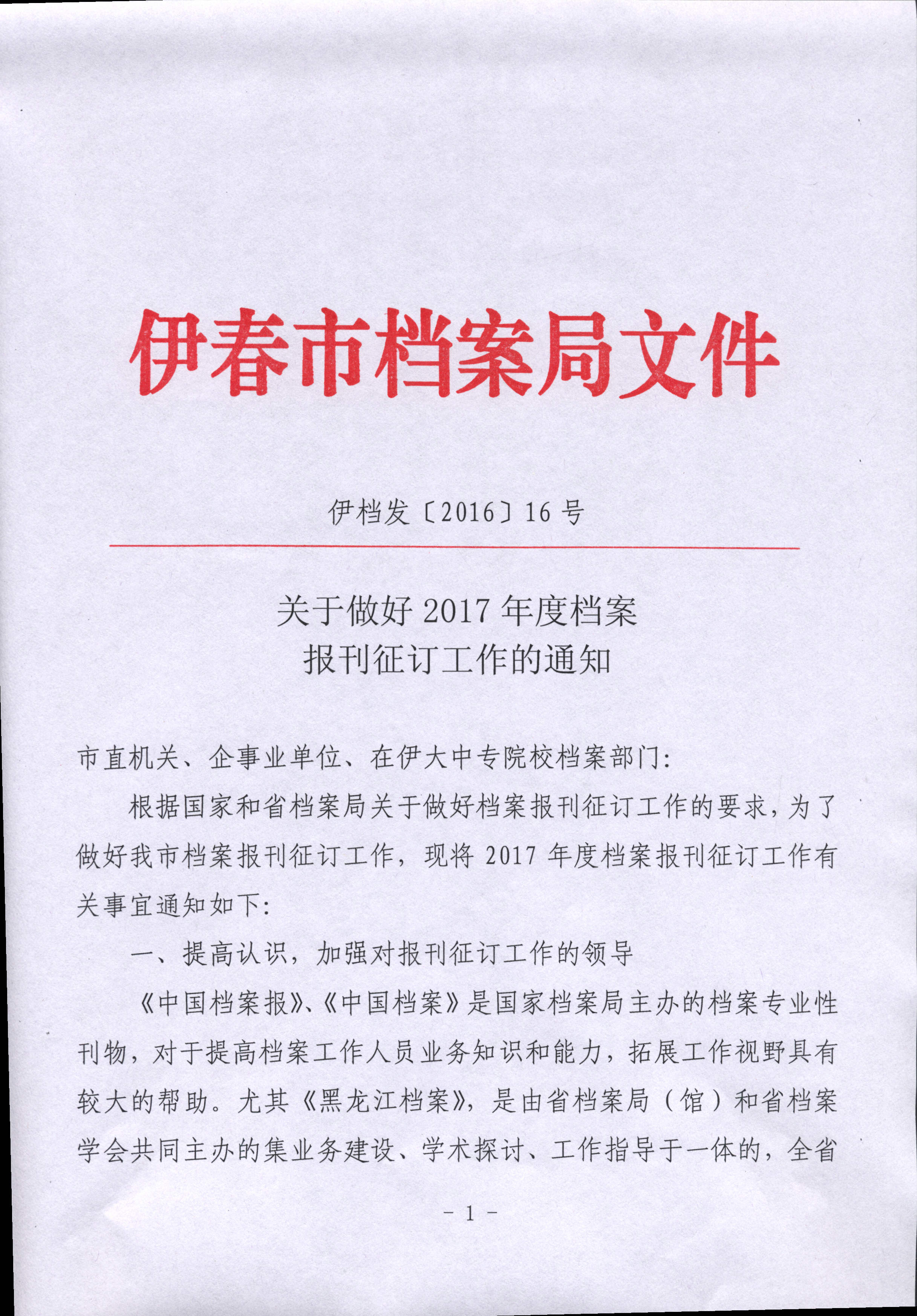 关于做好2017年度档案报刊征订工作的通知 (市直订刊)