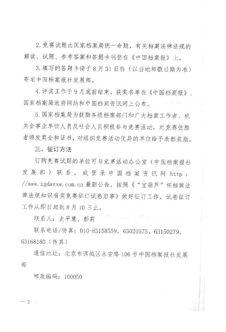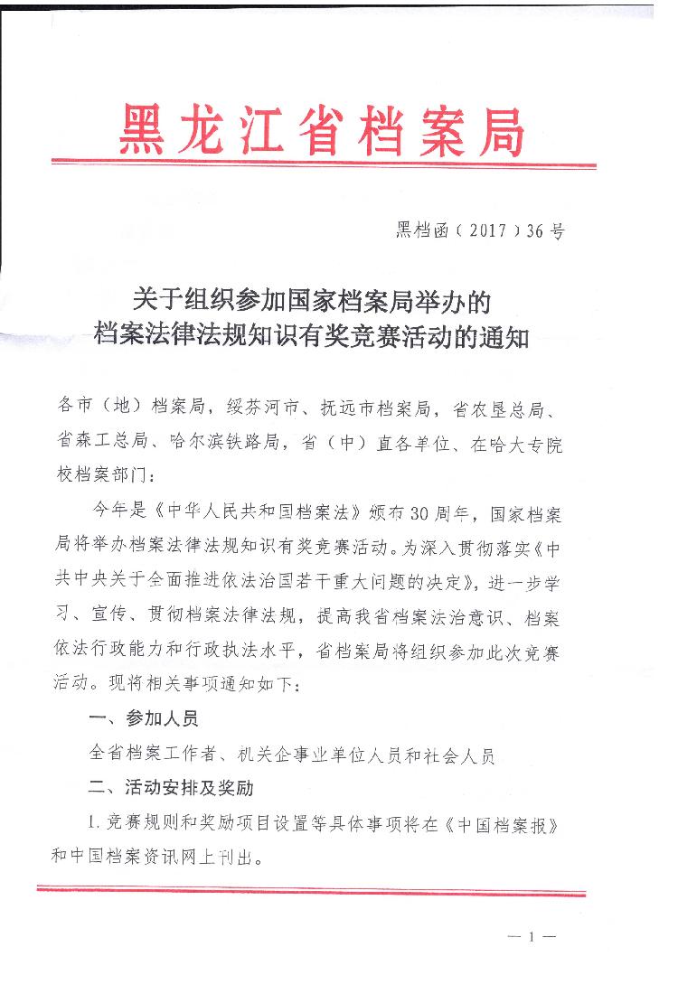 今年是《中华人民共和国档案法》颁布30周年,国家档案局将举办档案法律法规知识有奖竞赛活动,现将《关于组织参加国家档案局举办的档案法律法规知识有奖竞赛活动的通知》转发给你们,望我市档案工作者积极响应,踊跃报名。