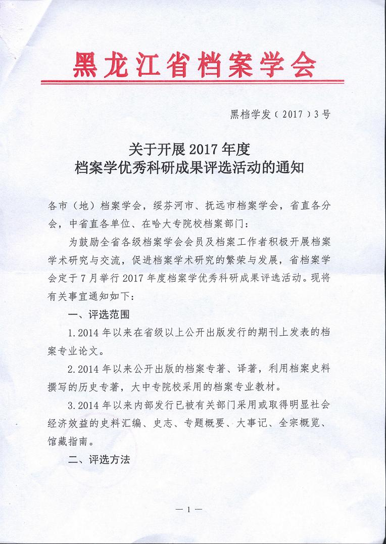关于转发《关于开展2017年度档案学优秀科研成果评选活动的通知》的通知